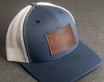 Custom Logo Leather Patch Trucker Style Hat Hats Richardson Etsy Leather Patches Custom Leather Hats